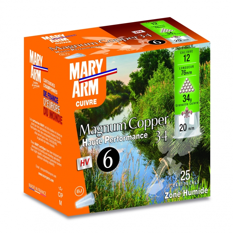 Ce chargement magnum associé aux caractéristiques du cuivre doux permet d’obtenir des gerbes denses et des bordures très fournies. La puissance développée par cette cartouche est exceptionnelle Portée maximale conseillée: 45 m Passe dans tous les chokes pour fusil bille acier 1320 bars.
